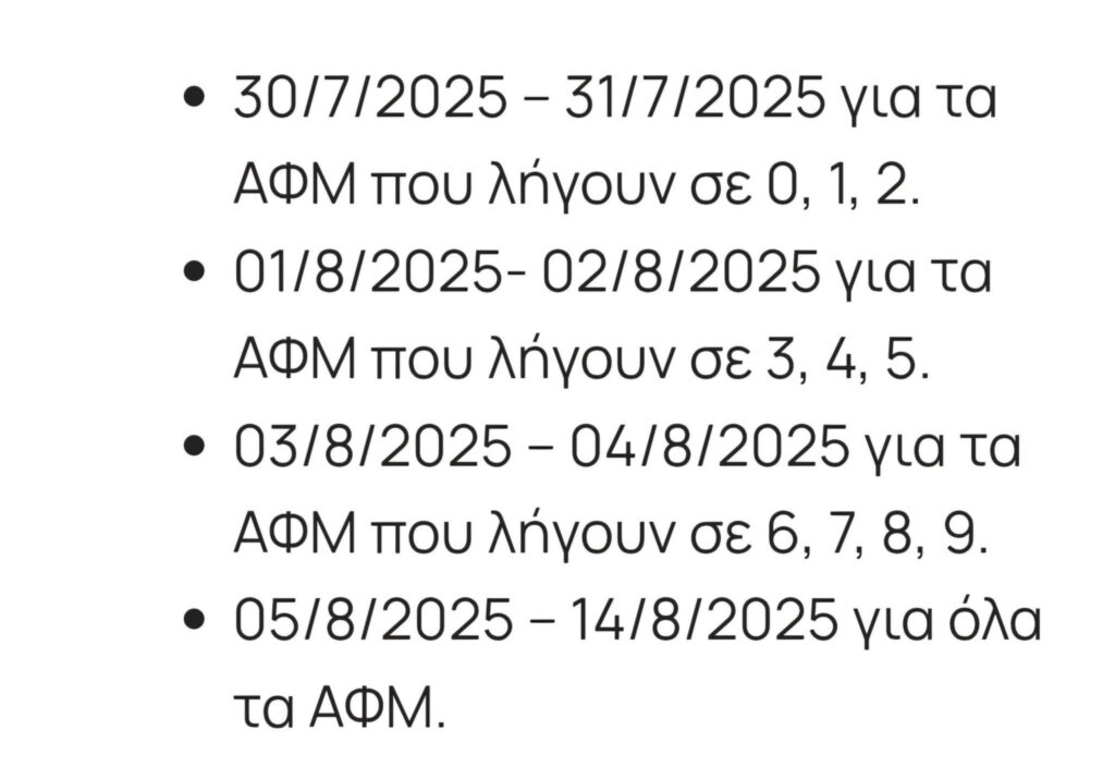 Δείτε τις ημερομηνίες των αιτήσεων ανάλογα με το ΑΦΜ σας: